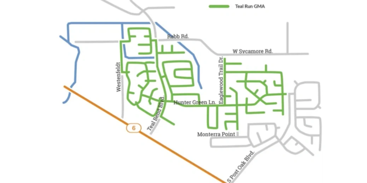 Teal Run GMA is located in Fort Bend County, Texas near Highway 6 and the Fort Bend Toll Road. The community consists of 985 single family homes located in a beautiful and mature landscaped property. Teal Run is conveniently located with quick and easy access to shopping, restaurants, and downtown Houston. Come and visit our community and enjoy one of our parks, playgrounds, or walking trails today and see why we were named CAI's Community of the Year for 2019.
